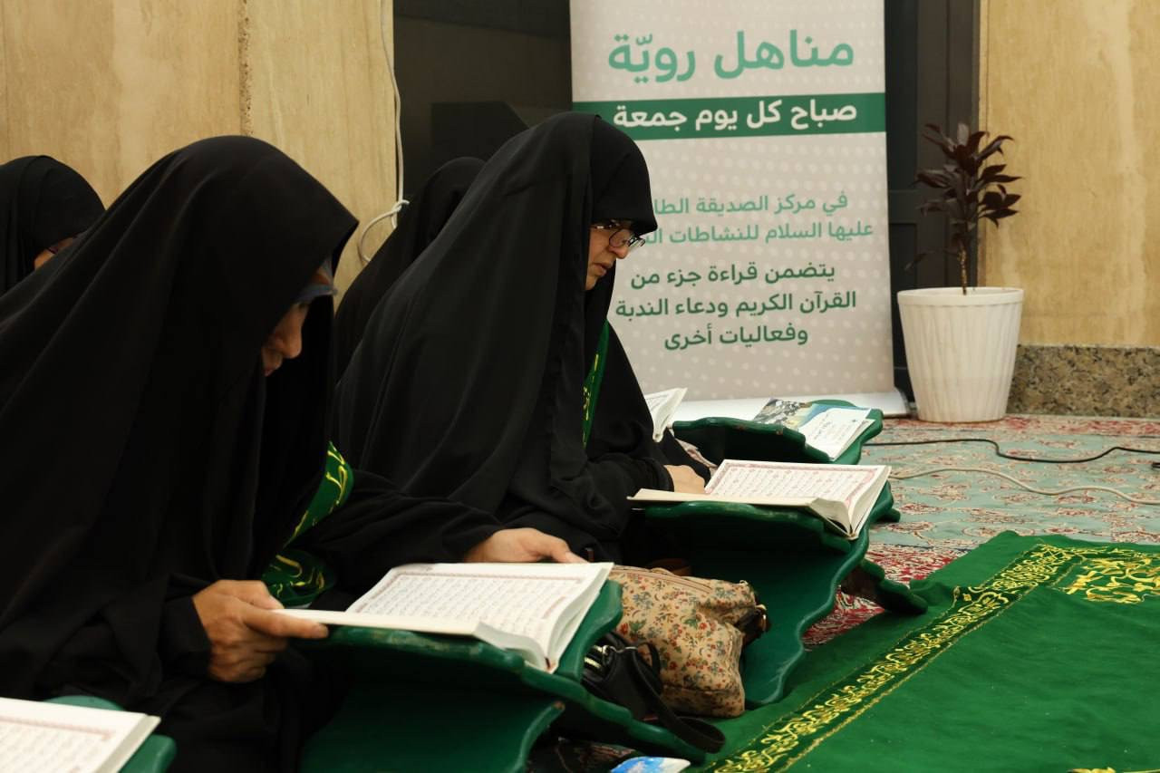 احتفت شعبة فاطمة بنت أسد (عليها السلام) للدراسات القرآنية التابعة لمكتب المتولّي الشرعي للشؤون النسوية في العتبة العبّاسية المقدّسة بمناسبة مرور عام على إطلاق برنامج "مناهل رويّة" وذلك في مقام الإمام صاحب الزمان (عجّل الله تعالى فرجه الشريف) بحضور ما يقارب (100) مشاركة. وأكّدت الحاضرات التزامهنَّ بالاستمرار في ندبة الإمام المنتظر (سلام الله عليه)، فيما استُهلّت الفعّاليات بتلاوة آيات من القرآن الكريم، أعقبها الدعاء والمناجاة وقراءة الأدعية الخاصّة، ممّا أضفى أجواء روحانية وإيمانية مميّزة. واختُتم البرنامج بزيارة مرقد المولى أبي الفضل العبّاس (عليه السلام)، والتبرّك بوجبة غداء في مضيف العتبة العبّاسية المقدّسة وسط أجواء جسّدت روح التواصل والمحبّة بين الحاضرات. وممّا يُذكر أنّ برنامج "مناهل رويّة" انطلق العام الماضي في اليوم التاسع من شهر ربيع الأول تزامنًا مع يوم الغدير الثاني، وتمكّن خلال عامه الأول من ترسيخ حضوره بوصفه محطّة إيمانية بارزة عَبر أنشطته القرآنية والروحية التي تسهم في إحياء مناسبات أهل البيت (عليهم السلام) وتعزيز الصلة بالقرآن الكريم. وتسعى الشعبة إلى مواصلة هذا البرنامج بما يعزّز من القيم القرآنية والإيمانية، وينشر الوعي الرسالي في أوساط المجتمع النسوي.