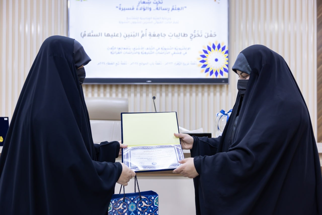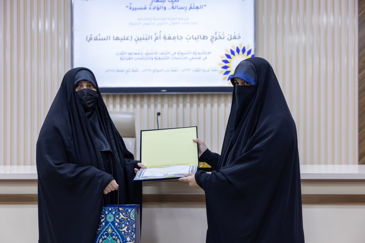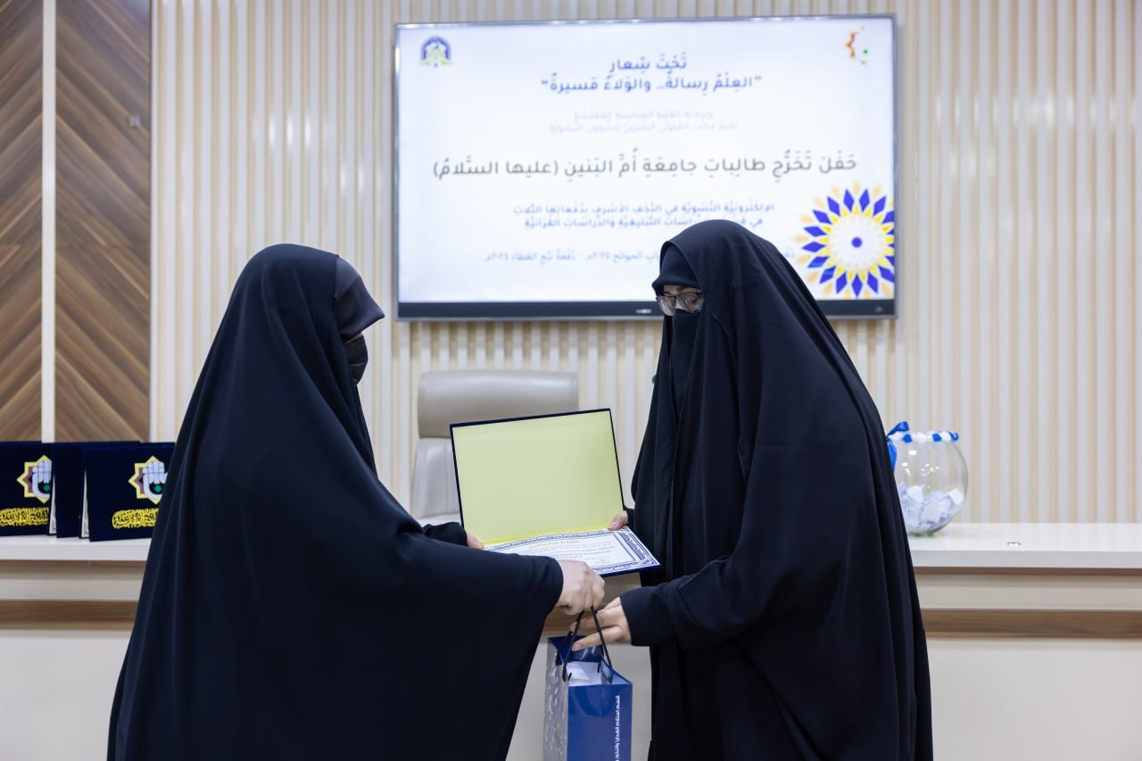 كرّمت جامعة أمّ البنين (عليها السلام) الإلكترونية النسوية، التابعة لمكتب المتولي الشرعي للشؤون النسوية في العتبة العباسية المقدّسة، الطالباتِ الأوائل لثلاث دفعاتٍ متتالية (2023 – 2024 – 2025)، وذلك خلال حفل تخرّجٍ أُقيم احتفاءً بإنجازاتهنّ. وجاء هذا الاحتفاء تتويجًا لجهود الطالبات المتفوّقات اللواتي قدّمن نموذجًا يُحتذى به في التفرّد والإصرار على بلوغ أعلى المستويات الحوزوية، معزّزًا روح المنافسة الإيجابية ومشجّعًا على التميّز العلمي. ولم يقتصر التكريم على الطالبات فحسب، بل شمل الملاكين التدريسي والإداري في الجامعة، تقديرًا لدورهم المحوري في أداء رسالتهم التعليمية وسعيهم الدؤوب لتطوير البيئة الحوزوية بما يضمن تقديم أفضل مستويات التعليم. وتعكس هذه الفعاليات رؤيةَ الجامعة الهادفة إلى دعم الإبداع والتميّز، وتعزيز بيئةٍ تعليميةٍ محفّزةٍ تسهم في إعداد جيلٍ من النساء القادرات على مواصلة النجاحات والإنجازات العلمية.