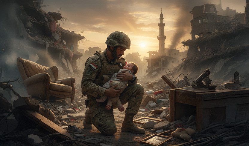 هدأت أصوات الحرب، وأسدل الليل سدوله، تقدّم جنديٌ نحو بصيص نور يتسلّل من بين أنقاض أحد البيوت المهدّمة، متذرّعا بالبحث عن الماء، لكنّ خطواته كانت ثقيلة، تثقلها وطأة المعركة والإرهاق، توقّف عند باب بالكاد يستند إلى بعض الأحجار المتراصّة، وأخذ يجول ببصره بحثا عن أيّ أثر للماء، حتى لمح في عمق الركام آنية صغيرة فأسرع نحوها، وحين أمسك بها وجدها فارغة، ثم سقط على الأرض من شدّة الإعياء متهاويا بين وعي يغيب ويعود، وفجأة سمع أنينا خافتا ينقطع ثم يعود، كأنّه صوت من عالم بعيد فظنّه في البداية ضربا من الهلوسة من آثار التعب. عاد ليستلقي فوق تلك الأحجار الباردة، يحدّق في السماء بعين غافية استسلمت لنوم طويل. شعر بحركة خفيفة تحت يده، ثم دوّى الصوت مرّة أخرى، كان أعمق وأكثر إلحاحا. هبّ من مكانه مذعورا، وراح يزيح الأحجار بيديه المرتجفتين، يرميها بعيدا بكلّ ما بقي فيه من قوة، يبحث بيأس عن مصدر ذلك الصوت المجهول، ذلك الأنين الخافت الذي أبى أن يصمت، كانت الأحجار تنزلق من يديه المتعبة، لكنّ شيئا بداخله كان يدفعه للاستمرار، وبينما هو منهمك في الحفر، شعر فجأة ببرودة يد صغيرة تلامس يده، تسمّر في مكانه، حدّق بها فإذا هي يد ناعمة، هامدة، تكاد تخفى تحت الركام، إنّها يد طفلة! أزاح عن وجهها التراب وآثار الأنقاض التي شوّهت ملامحها وأخفت ابتسامتها الصغيرة، ضمّها إلى صدره، لفّها بذراعيه المرتجفتين، ثم نهض مسرعا يركض بها نحو زملائه من الجنود، وتساءل ماذا يمكن أن يصنعوه لأجلها فهم مثلها عطاشى، متعبون، مرهقون حتى النخاع، أجسادهم أنهكتها الحرب، وقلوبهم أثقلها فقد الأحبّة، أيتركونها وحدها تصارع الحياة؟ أتسكت أنفاسها الضعيفة مثلما سكتت أصوات أهلها؟ أم تطالها نيران الحرب من جديد، لتلتحق بذويها الذين سبقوها إلى الرحيل. نهض واثقا قائلا في نفسه: (يستحيل ذلك، تلك الثلّة التي أبت نفوسهم الذلّ والخنوع، وجادوا بأرواحهم الطاهرة لنحيا، كيف لهم أن يتركوها تموت؟ كيف يسمحون لأنفاسها أن تنطفئ، مثلما انطفأ الورد في بلادنا؟) فتقدّموا يتسابقون كلٌّ يريد التكفّل بحملها لينقلها إلى مكان آمن تجد فيه ما تحتاجه لتعيش على الرغم من طول المسافة، وقد تتطلّب مشيا مرهقا بين الركام والخراب، لكن لم يتراجع، فحملها ذلك الجندي الذي دخل بيتها بحثا عن الماء وانطلق يقطع الطريق الطويل، يسابق الوقت كي يسقيها متناسيا عطشه، متجاهلا ألمه، كأنّ لا أمر يشغل تفكيره سوى أن تعيش. بعد غياب مدّة من الزمن، عاد وابتسامة عريضة تملأ وجهه، وجهه يتهلّل فرحا كأنّه عاد يحمل حياة جديدة للطفلة، لقد وجد لتلك الرضيعة أملا آخر ومستقبلا كان على وشك أن يدفن تحت الأنقاض، ويبدو أنّ ضحكاتها الصغيرة قد طبعت على وجهه، فصار يحملها معه حين التقى أصحابه، قرأوا في عينيه ذلك الفرح الصادق، وأيقنوا أنّهم قادرون على أن يضحّوا ليحيا الورد في وطنهم من جديد، وما زادتهم تلك الابتسامة إلّا يقينا بأنّ النصر حليفهم، وأنّ الحياة مهما تكاثف حولها الموت فلا تزال ممكنة حين تروى بالدم الطاهر والنيّة الصافية.