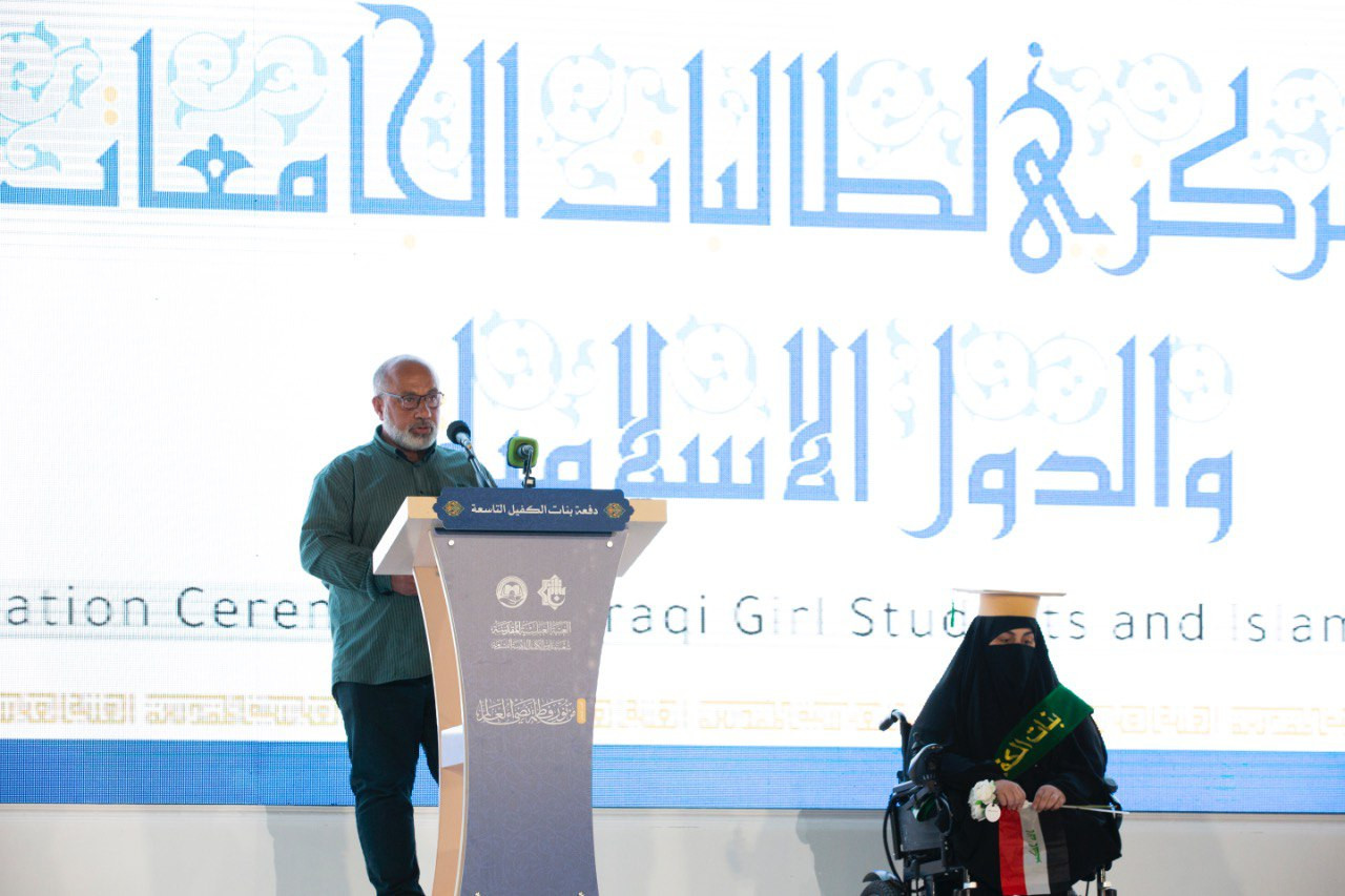 شهدت فعّاليات الحفل الختامي لتخرّج طالبات الجامعات العراقية والدول الإسلامية (دفعة بنات الكفيل التاسعة) لحظة مؤثرة جسّدت قيم الإصرار والعطاء، عندما كرّم المتولّي الشرعي للعتبة العبّاسية المقدّسة سماحة السيّد أحمد الصافي الطالبة زهراء حيدر من ذوي الهمم تقديرًا لتفوّقها العلمي وجهودها المتميّزة على الرغم من التحدّيات. وجاء هذا التكريم في ضمن فعّاليات الحفل الذي نظّمته شعبة مدارس الكفيل الدينية النسوية التابعة لمكتب المتولّي الشرعي للشؤون النسوية في العتبة المقدّسة تحت شعار (من نور فاطمة -عليها السلام- نضيء العالم) بمشاركة أكثر من (5000) طالبة من (14) محافظة عراقية، و(231) طالبة من (7) دول إسلامية هي: الكويت، سلطنة عمان، البحرين، السعودية، إيران، باكستان، لبنان. وفي كلمةٍ ألقاها السيّد حيدر عبد الزهرة حمود وليّ أمر الطالبة زهراء حيدر بالنيابة عن أولياء الأمور، عبّر فيها عن شكره وامتنانه للعتبة العبّاسية المقدّسة لما تبذله من جهود في رعاية الطالبات وتنظيم احتفالات مباركة كهذه التي تجمع الخرّيجات في مكانٍ يليق بدينهنَّ وهويتهنَّ الإسلامية، مؤكّدًا أنّ ابنته كانت أنموذجًا مشرّفًا للإرادة التي لا تعرف المستحيل، وأنّ تفوّقها رسالة أملٍ إلى كلّ مَن يواجه التحدّيات بأنّ الإصرار والاعتماد على الله تعالى هو طريق النجاح. وقال حمود في كلمته: "إنّ ما تقدّمه العتبة العبّاسية المقدّسة من رعاية واهتمام بطالبات العلم يعكس وعيها برسالتها الإنسانية والتربوية، فهي لا تكرّم المتفوّقات فحسب، بل تحتفي بكلّ مَن تحدّت الصعاب لتثبت أنّ الإعاقة لا تقف بوجه الطموح". وجاء تكريم الطالبة زهراء حيدر ليؤكّد نهج العتبة المقدّسة في الاهتمام بذوي الهِمم، وتقديم الدعم المعنوي لكلّ مَن يسير على طريق العلم والإيمان، بوصفهم نماذج مضيئة في المجتمع قادرة على الإسهام في نهضته. ويُعدّ حفل بنات الكفيل التاسع من أبرز المبادرات التي ترعاها العتبة العبّاسية المقدّسة سنويًا بهدف تقديم الدعم المعنوي للطالبات المتخرّجات، وتكريم جهودهنَّ العلمية، وانطلاقتهنَّ نحو الحياة العملية من رحاب المولى أبي الفضل العبّاس (عليه السلام) وسط أجواء إيمانية تعبّر عن تلاقي العلم بالعفّة، والإصرار بالإيمان.