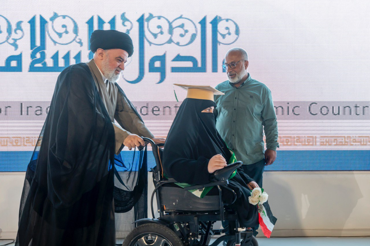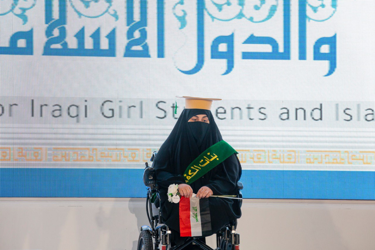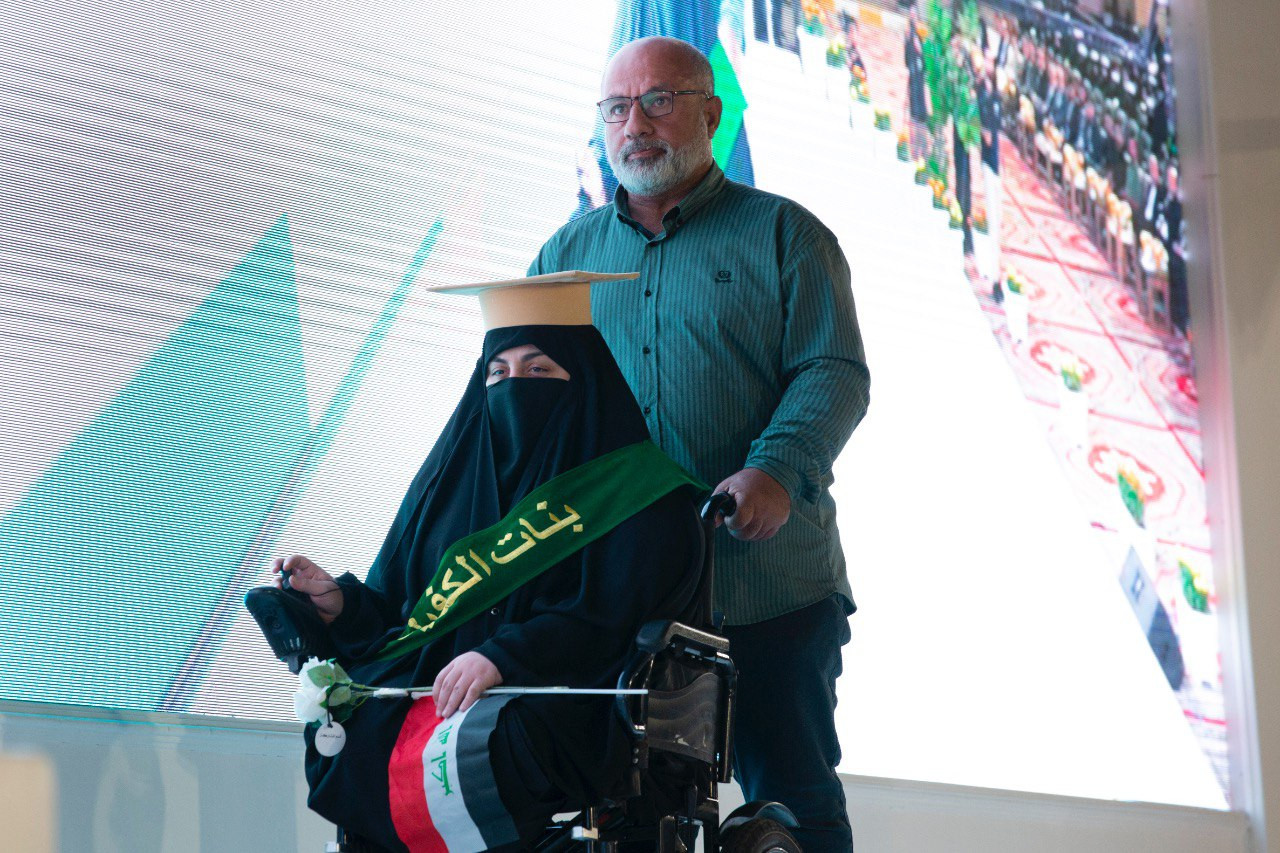 العتبة العباسية المقدسة تكرّم طالبة من ذوي الهمم وتحتفي بعزيمتها في ضمن فعاليات حفل تخرّج بنات الكفيل التاسع