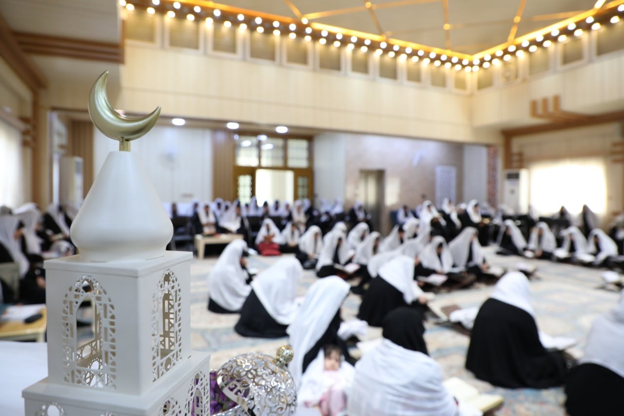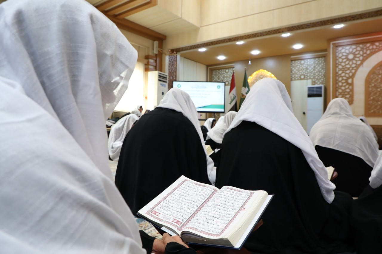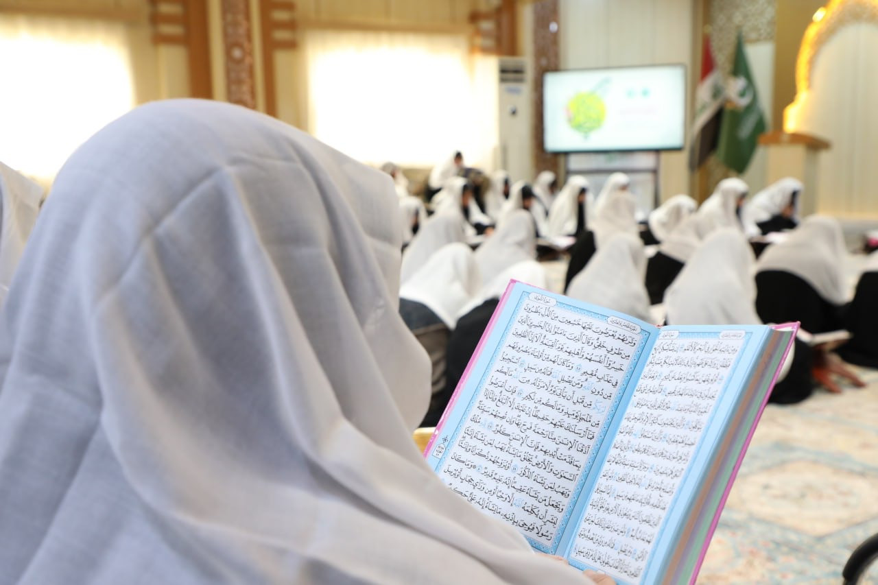 ختم معهد القرآن الكريم النسوي التابع لمكتب المتولّي الشرعي للشؤون النسوية في العتبة العبّاسية المقدّسة محفله القرآني الحضوري في شهر رمضان المبارك. وقالت مسؤولة المعهد السيّدة منار الجبوري: "يقيم المعهد سنويًا في مقرّه في النجف الأشرف ختمة حضورية للقرآن الكريم في شهر رمضان المبارك، إذ تجتمع المؤمنات لقراءة القرآن الكريم والاستماع إلى المواضيع العقائدية والفقهية التي تُطرح في الاستراحة الفاصلة بين تلاوة الأجزاء". وأضافت الجبوري: "تدير الجلسة القرآنية أستاذات متخصّصات في علوم القرآن، انتُخبنَ بعناية من قِبل اللجنة المتخصّصة لتمكنهنَّ من القراءة الصحيحة". واختُتم البرنامج الذي حضرته أكثر من (١٥٠) مشاركة بدعاء ختم القرآن الكريم، ثم مجلس العزاء الخاصّ باستشهاد أمير المؤمنين (عليه السلام).j