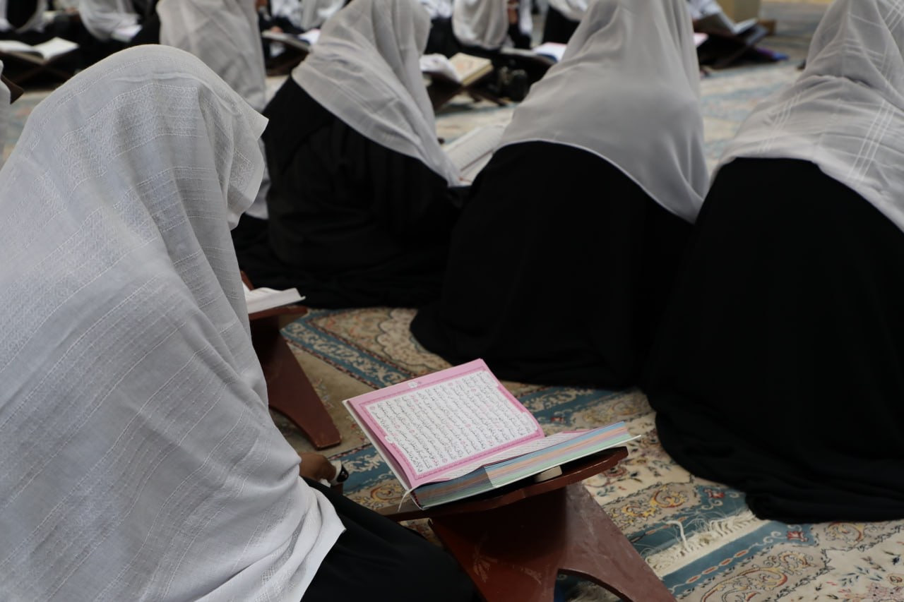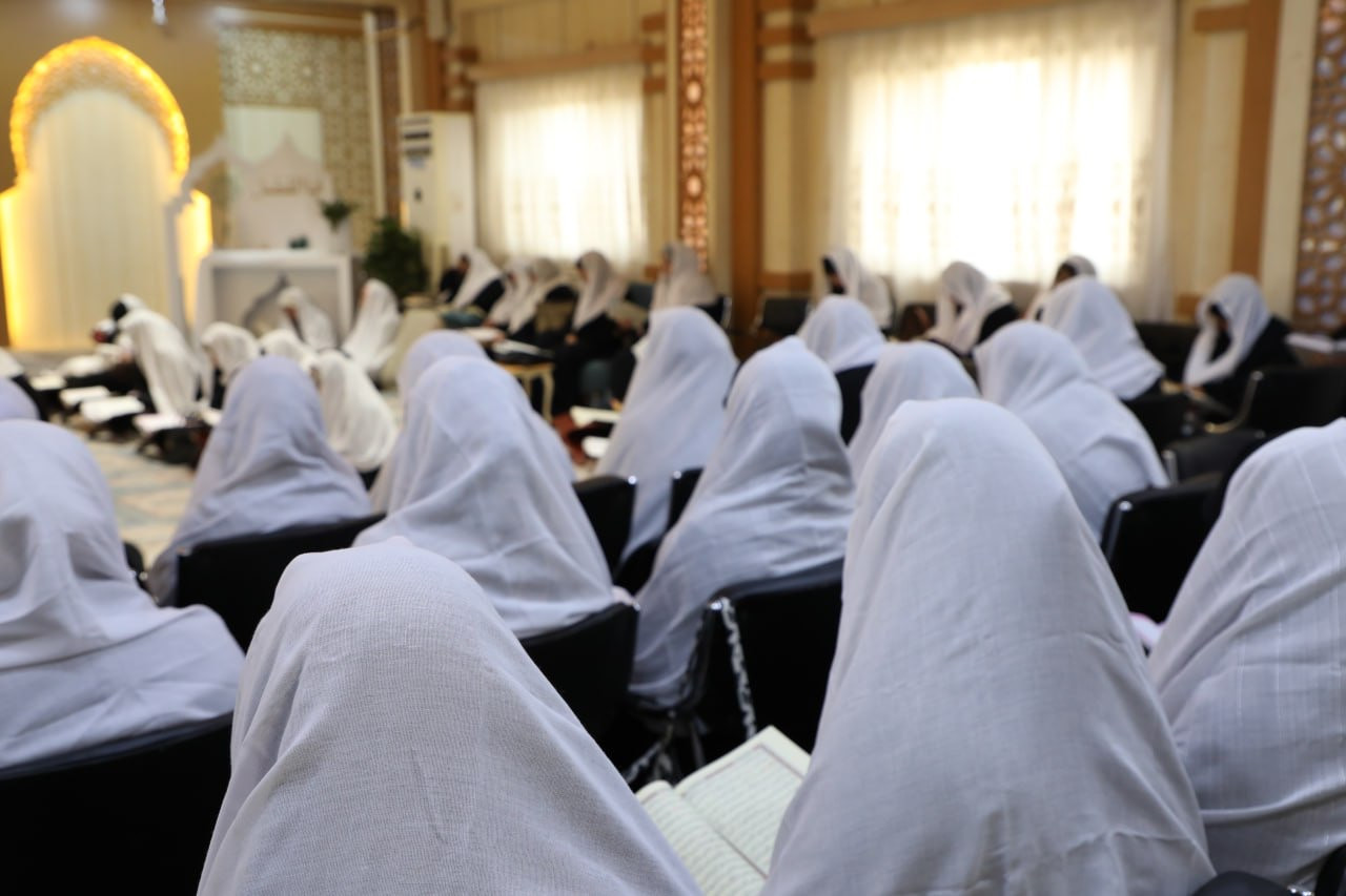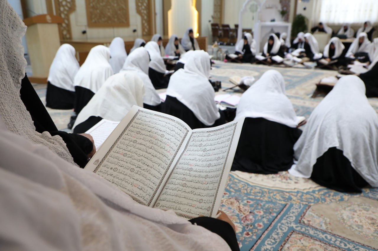 ختم معهد القرآن الكريم النسوي التابع لمكتب المتولّي الشرعي للشؤون النسوية في العتبة العبّاسية المقدّسة محفله القرآني الحضوري في شهر رمضان المبارك. وقالت مسؤولة المعهد السيّدة منار الجبوري: "يقيم المعهد سنويًا في مقرّه في النجف الأشرف ختمة حضورية للقرآن الكريم في شهر رمضان المبارك، إذ تجتمع المؤمنات لقراءة القرآن الكريم والاستماع إلى المواضيع العقائدية والفقهية التي تُطرح في الاستراحة الفاصلة بين تلاوة الأجزاء". وأضافت الجبوري: "تدير الجلسة القرآنية أستاذات متخصّصات في علوم القرآن، انتُخبنَ بعناية من قِبل اللجنة المتخصّصة لتمكنهنَّ من القراءة الصحيحة". واختُتم البرنامج الذي حضرته أكثر من (١٥٠) مشاركة بدعاء ختم القرآن الكريم، ثم مجلس العزاء الخاصّ باستشهاد أمير المؤمنين (عليه السلام).j