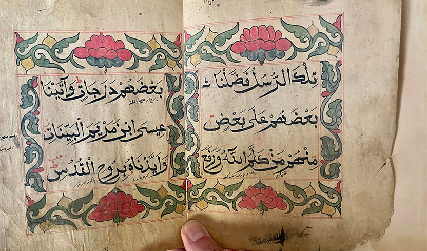 التاريخ: (1700م). الأبعاد: (26 × 18.5 سم). عدد الأوراق: (54) ورقة. رقم الفهرسة: (439) يحمل المصحف الرقم (439) داخل مجموعة مكتبة ميليكيان/ melikiancollection. يعدّ المصحف الموجود في الصين واحدًا من أجمل الشواهد الباقية على المصاحف الصينية المزخرفة في أوائل القرن الثامن عشر التي تُعرض في مكتبة ميليكيان وفي المجموعة نفسها التي أُسّست سنة (2004م)، وهي من ضمن أبرز المجموعات المتخصّصة بجمع المخطوطات والتحف من آسيا، وإفريقيا وأوروبا، وتضمّ عددًا مهمًّا من المصاحف والمخطوطات الإسلامية، ويمكن الاطّلاع على فئة الأعمال الدينيّة عن طريق الرابط الآتي: https://melikiancollection.com/?artwork-category=islam أمّا المخطوطة الأبرز فهي جزء من مصحف مكتوب بالحبر الأسود على ورق مصقول، تزيّنه زخارف محلّية صينية مميّزة، وهو في المجموعة فائق الجمال، ويضمّ (54) ورقة، تبدأ من الآية (75) من سورة (الكهف) وصولًا إلى الآية (135) من سورة (طه)، كُتب بخطّ (المحقّق)، وهو خطّ تقليدي معروف في المصاحف المشرقية، لكنّه جاء في النسخة الصينية التي تجمع بين المدرستين الفارسية والشرق آسيوية والتأثيرات المحلّية، وضمّت كلّ صفحة من صفحاته (5) أسطر، وبذلك مُنح الخطّ حضورًا واسعًا ومساحات تتيح إبراز الأُطر والزخارف، وتظهر علامات الإعراب باللونين الأحمر والأسود، وتُشير إلى فواصل الآيات علامة زخرفيّة ثنائية البتلة، وكُتبت بداية السُور بالحبر الأحمر وهو تقليد يجمع بين الذوق الصيني والتأثير العثماني. الورق والزخرفة: نُسخ المخطوط على ورق سميك مصقول، ويظهر أثر الكيّ والصقل المميّز للورق الصيني في تلك الحقبة، تحيط بالصفحات خطوط حمراء تشكّل إطارًا زخرفيًا دقيقًا، يعكس حسّاسية فنّية عالية وإحساسًا صينيًا يوازن بين النصّ والزخرفة. أمّا الواجهة فهي مذهّبة (الفرونتيسبيس) مكوّنة من صفحتين متقابلتين غنّيتين بزخارف نباتية وهندسية، تحمل روح الفنّ الصيني، وتسبقها دائرة زخرفية (روندل) بخطّ جميل، وتحمل صفحة الواجهة عبارة (كلام الله)، ممّا يدلّ على أنّ القطعة ربّما كانت مخصّصة للعرض أو للهدايا الرسمية. أمّا التجليد، فينتمي للطراز المغربيّ من الجلد البنّي، مزيّن بنقوش مضغوطة وطغراء مركزية، وزخارف ركنية، تبيّن مزيجًا حضاريًا لافتًا بين التقاليد المغربية في التجليد وبين الحسّ الزخرفي الصيني. الأهمّية الفنّية والحضارية: وتظهر أهمّية هذه القطعة في وصولها إلى الصين حاملةً الوحي الخالد المنزّل على قلب سيّد الرسل (صلّى الله عليه وآله)، لتُعبّر عن نفسها في أقصى الشرق عَبر اندماج فريد بين الخطّ العربي والزخرفة الصينية، وتتيح المجموعة الاطّلاع على فئة الأعمال الدينية عَبر موقعها الإلكتروني، إذ يبرز هذا العمل بوصفه أنموذجًا فائق الجمال لفنّ كتابة المصاحف في أقصى الشرق. وتوثّق مجموعة (ميليكيان) نماذج مشابهة من مناطق نائية أخرى، كمخطوطات من (هرر)، ومن (إثيوبيا)، ومن شمال أفريقيا، ومن آسيا الوسطى. نماذج يمكن مشاهدتها عبر الرابط الآتي: https://melikiancollection.com/artwork/ethiopian-quran-413/.