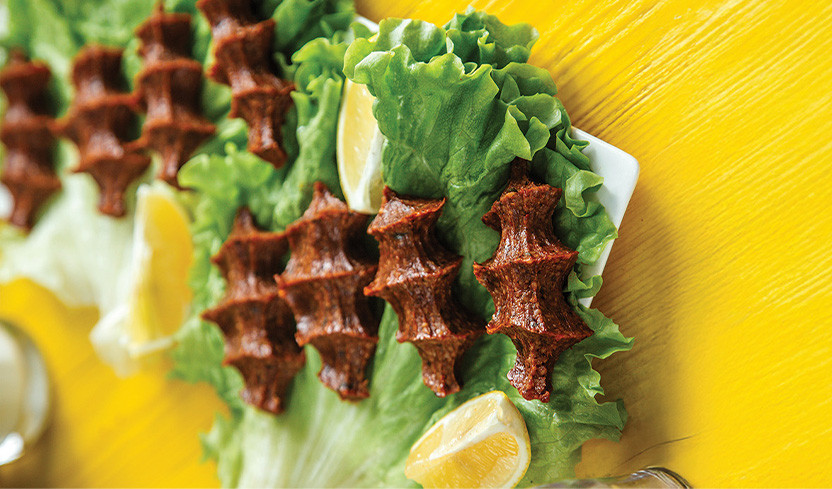 المكوّنات: - (1) كوب من البرغل الناعم. - حبّة طماطم كبيرة. - حبّة بصل صغيرة. - (3) فصوص من الثوم. - (4/1) باقة من البقدونس. - ملعقة صغيرة من الكمون. - ملعقتان صغيرتان من الملح. - ملعقتان كبيرتان من دبس الرمّان. - ملعقتان كبيرتان من معجون الطماطم. - رشّة من الفلفل الأسود. - ملعقة كبيرة من زيت الزيتون. - ملعقة صغيرة من البابريكا الحلوة المدخّنة. - رشّة من الكركم. - رشّة من الزعفران. طريقة التحضير: - نقوم بغسل البرغل وتركه منقوعًا في الماء لمدّة (15) دقيقة، ثم نصفّيه من الماء. - تُفرم كلّ الموادّ بشكل ناعم جدًا. - يُعجن البرغل لمدّة (5) دقائق ليتماسك. - تُمزج جميع الموادّ جيدًا، ثم تُشكّل بحسب الرغبة.