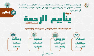 إعلان عن دورة ينابيع الرحمة بنسختها الثانية لطالبات الإعفاء العام لمرحلتي المتوسطة والاعد....ألمزيد